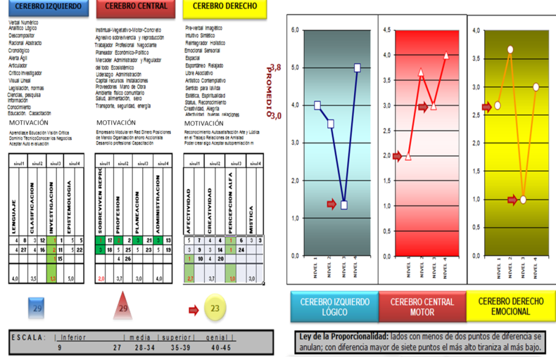 - Por su parte, el Cerebro Derecho, consiguió una valoración igual a 26. Que corresponde a un nivel Inferior en la Escala de Valoración.