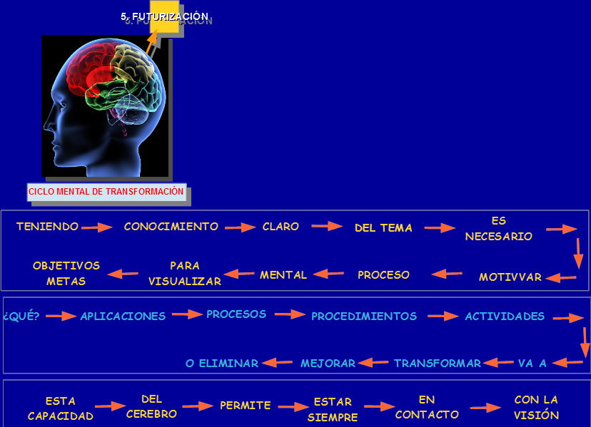 El quinto paso se inicia cuando el Cerebro Derecho: Futuriza. |
