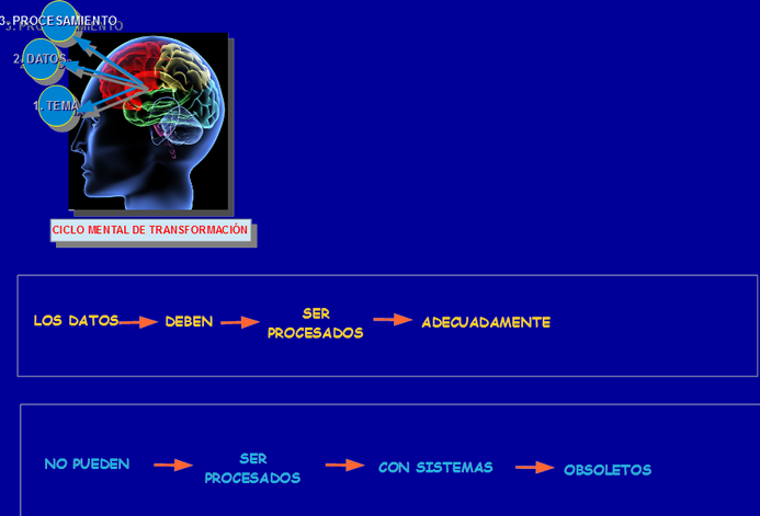 A continuación, encontrará el cuadro sinóptico del tercer paso táctico del CCTM. Puede observar que el Procesamiento de los Datos, estará dirigido también, por el cerebro izquierdo. |